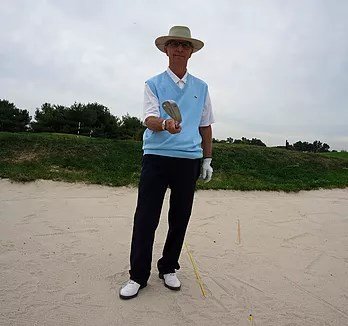 The thumb pad of the left hand placed on the top of the golf club, to the right of the grip and held in the fingers of the left hand.