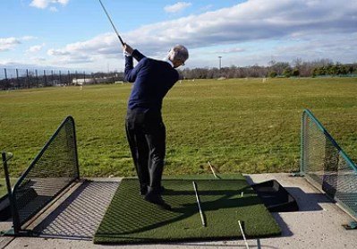The face of the club swings on it’s design, due to the triangle being moved by the back. The triangle is formed by the shoulders and arms.
